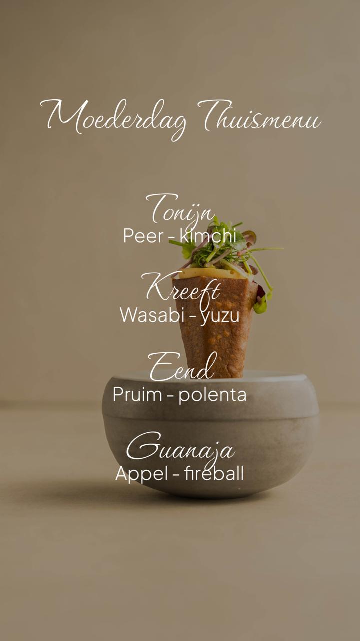 Met slechts 10 minuten bereidingstijd per gerecht brengen wij de verfijnde keuken van ons restaurant naar jouw eettafel. Zo kunnen jij en je moeder samen, in alle rust, genieten van een culinair moment vol aandacht en smaak.